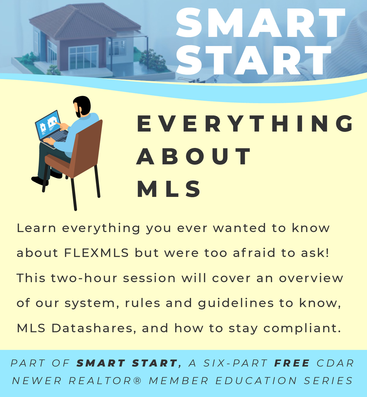 Join us to learn Everything About MLS, part of our Smart Start series, on Thursday, February 19th, from 9 AM to 11 AM. This two-hour session will feature everything you need to know about FLEXMLS but were too afraid to ask. Get a live demo overview of the MLS, along with information about rules and guidelines to know, MLS datashares, lockboxes, and tips and tricks on best practices and what pitfalls to avoid to stay on the right side of compliance.