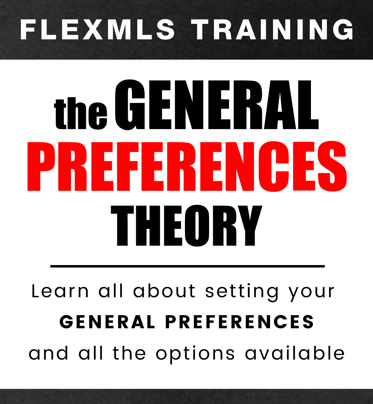 Join us for THE GENERAL PREFERENCES THEORY, an in-person FLEXMLS training class on Wednesday, February 11th, from 2 PM to 3 PM. This class will cover everything you need to know about setting your General Preferences in FLEXMLS, including where to go to change your preferences and all of the options available to you.