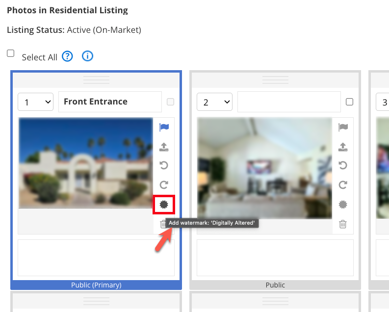 Note that you will need to click the watermark icon in order for the “Digitally Altered” watermark to appear on any images that are digitally altered/AI renderings. There will be no automatic detection, and it will not default to that watermark automatically without being clicked.