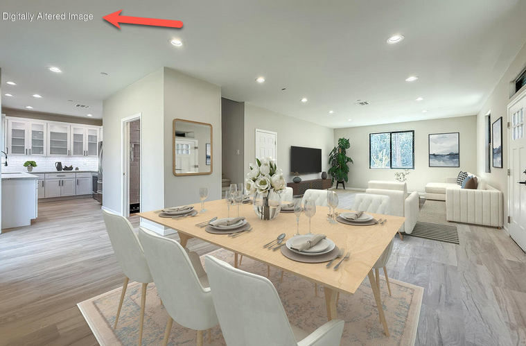 California Assembly Bill 723 (CA AB 723) was passed this year and went into effect as of January 1, 2026. It is a state law amendment that declares a property listing featuring digitally altered/AI images must include the original, unaltered photos, along with a disclosure on which images are digitally altered/AI. To coincide with this law, CDAR updated its MLS Rules, adding in Rule 11.5.1 (Definition of Digitally Altered Images) and 11.5.2 (Digitally Altered Images).