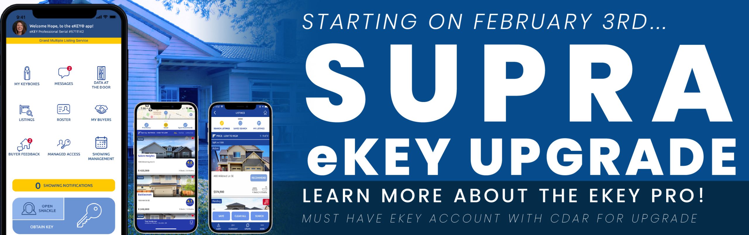 Starting on February 3rd, the California Desert Association of REALTORS® is providing members who have a Supra eKEY with a complimentary upgrade. Keys will automatically begin updating to the eKEY Pro service level starting on that date. Nothing is required on your part.